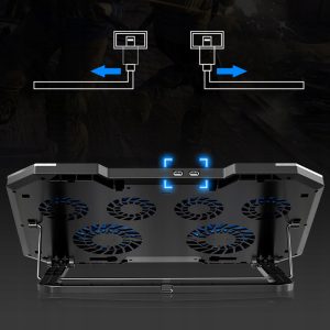 Podkładka została wyposażona w dwa porty. Jeden port zasilający, który łączy się za pomocą kabla USB z laptopem i zasila podkładkę. Z kolei drugi port służy do tego aby podłączyć do niego myszkę lub pendrive i dzięki temu laptop odczyta podłączone urządzenie w taki sam sposób jakby było podłączone bezpośrednio do laptopa.