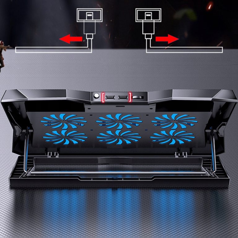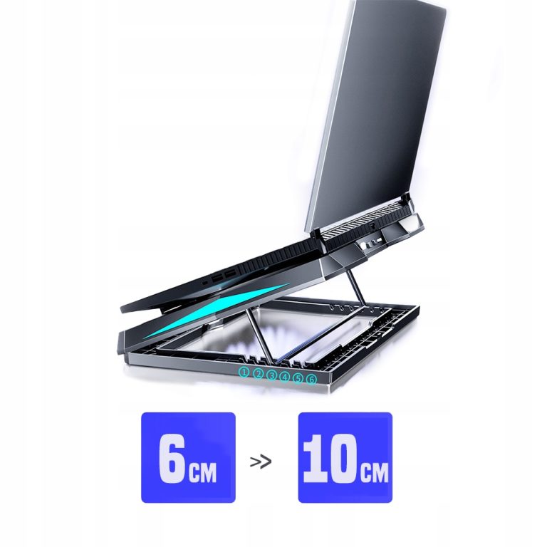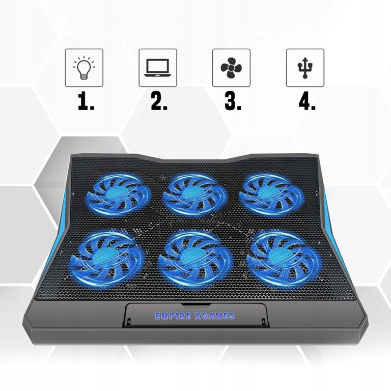 Sześć cichych i wydajnych wentylatorów generuje silny przepływ powietrza ze wszystkich stron. Szybko chłodzi laptopa i zapewniając natychmiastowe, poprawienie osiągów urządzenia